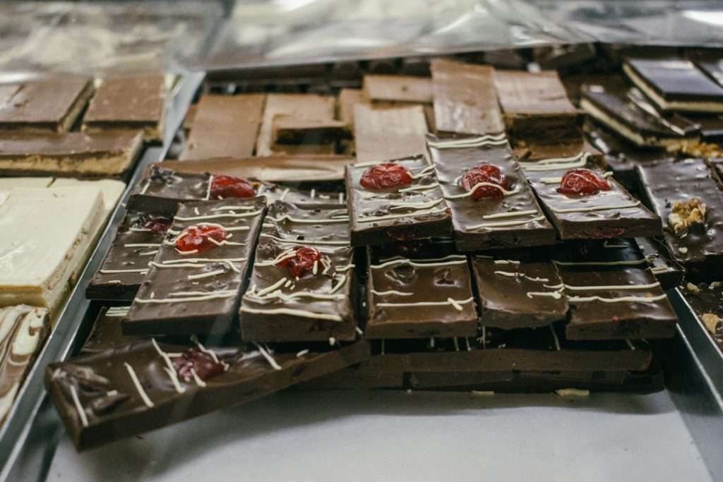 Las especialidades centroeuropeas y la repostería artesanal son protagonistas, con una amplia variedad de tortas, masas dulces y chocolates artesanales que forman parte de la identidad local.